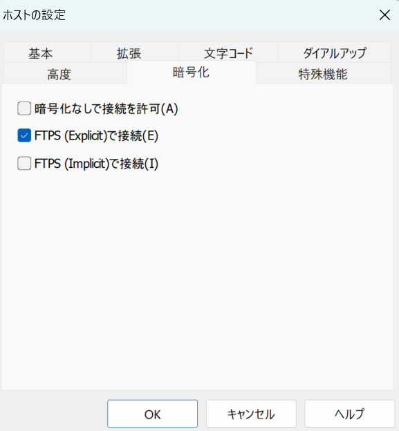 (ロリポップ FFFTP FTPS対応版の設定方法より)
