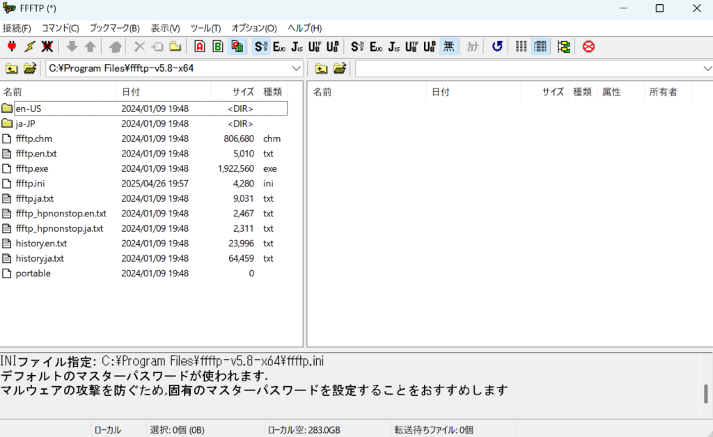 FFFTPはWindows向けの無料のFTPクライアントソフトウェアです。日本語と相性がよくUIがわかりやすいので多少古いですが使うことも選択肢に入れていいかなと思います。