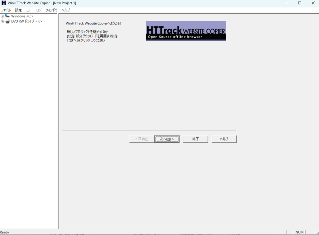 HTTrackのダウンロードおよびインストール