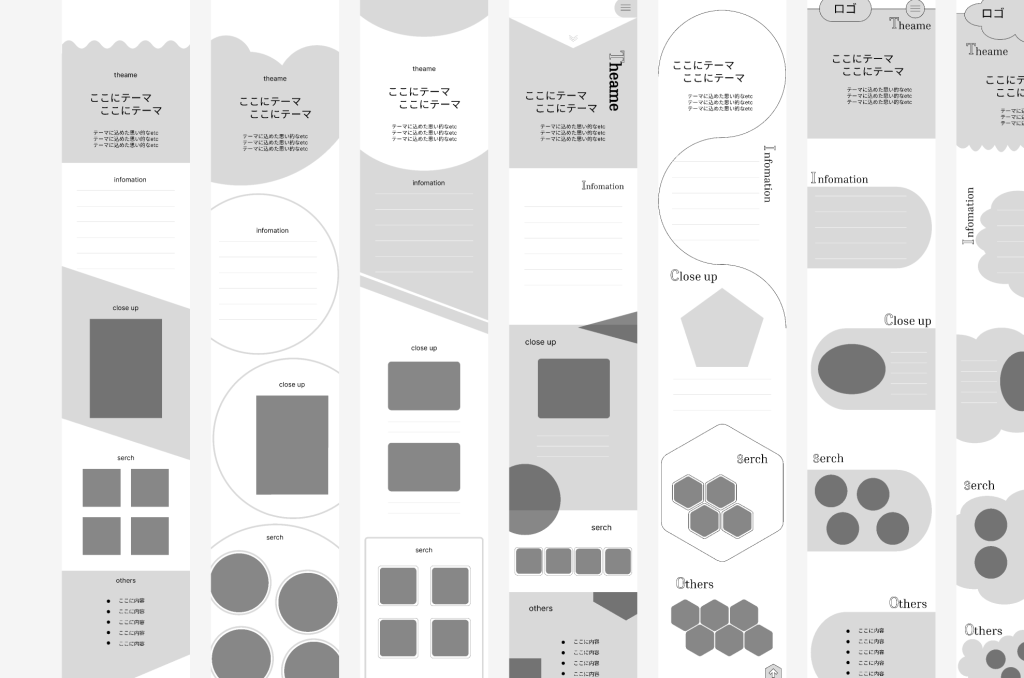 先ほどまでとは毛色が違いますが、Pintarestにはたくさんのがデザインやアイディアが投稿されています。この次の項目でまとめると思いますが、大まかな配置からデザインを進めることが多くなると思うので、そのようなものをたくさん見ることも大切だと思います。